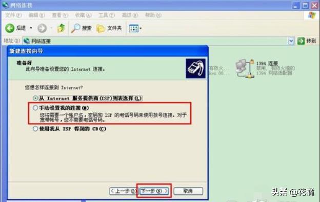 6、选择手动设置我的连接,点击下一步。