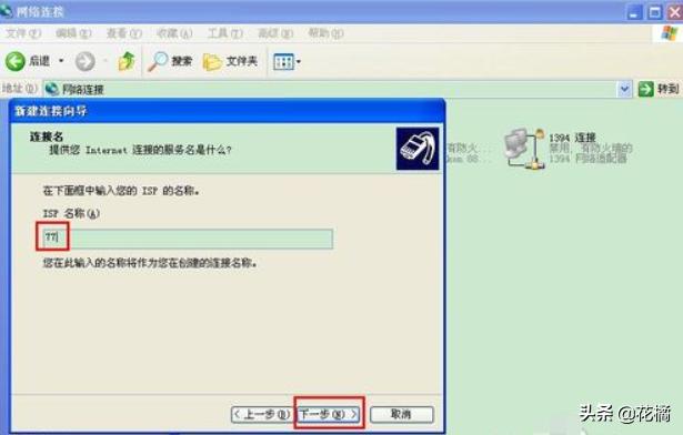 8、在ISP名称这里,想怎么输就怎么输,它只是显示你之后要建立的连接的名称,比如小编输77,点击下一步。