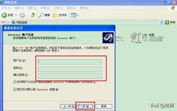 9、跟着要输入你所安装宽带的运营商给你提供的用户名和密码,然后点击下一步。