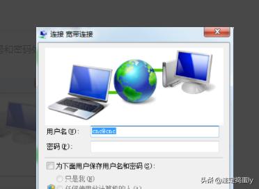 1、点击桌面的【宽带连接】,在账号和密码处均输入【cnc@cnc】,连接到宽带我世界下载地址网络。