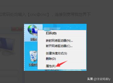 2、如果我们桌面没有宽带连接图标的话,右键点击桌面【网络】,在菜单栏里选择【属性】选项。