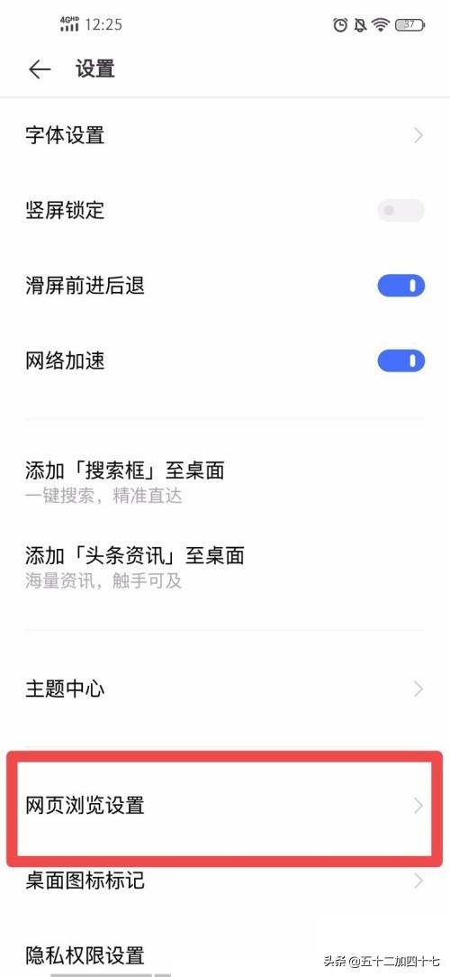 4、点击打开“网页浏览设置”
