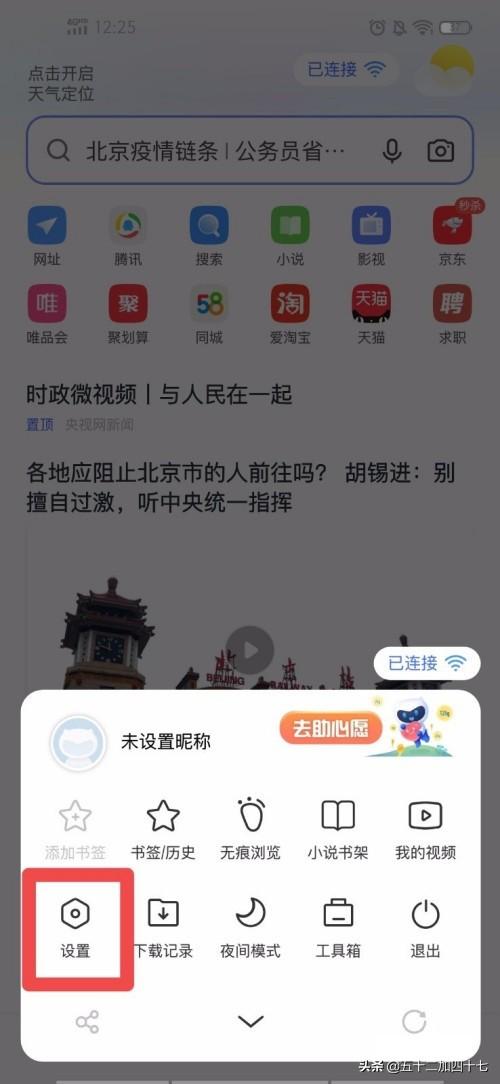 3、点击“设置”