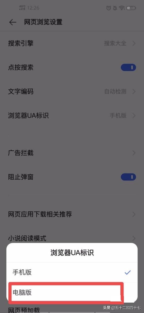 6、选择“电脑版”,接着打开需要网页版的网站就可以了