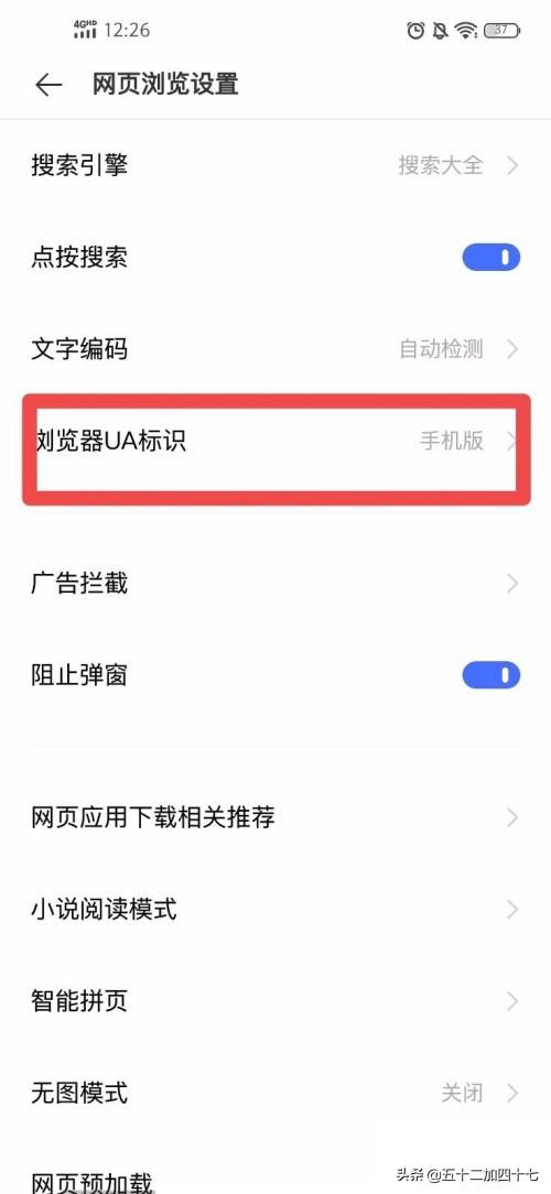 5、找到“浏览器UA标识”,点击