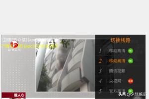 4、点击屏幕,界面右侧有一个全屏选项,左侧有一个选源选项。点击全屏进入后,点一下屏幕,会发现右侧有切换频道和切换路线的选项。如果想换台,直接点切换频道。