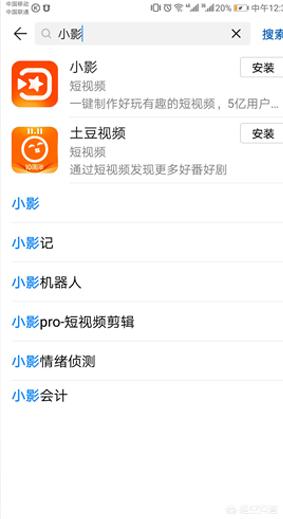 2、在应用市场中输入“小影”,单击“搜索”,进行下载并且安装