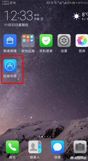 1、打开手机界面,单击“应用市场”图标