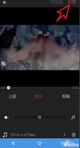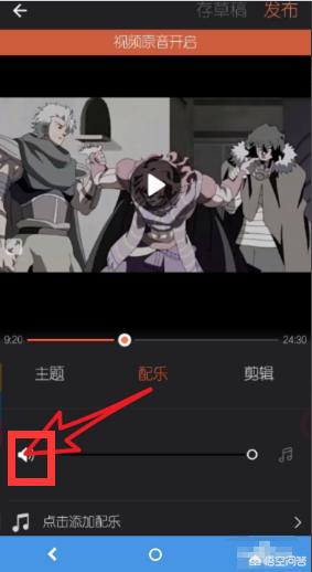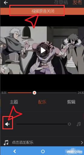 点击下一步,选择配乐工具,选择原音关闭,点击发布即可。