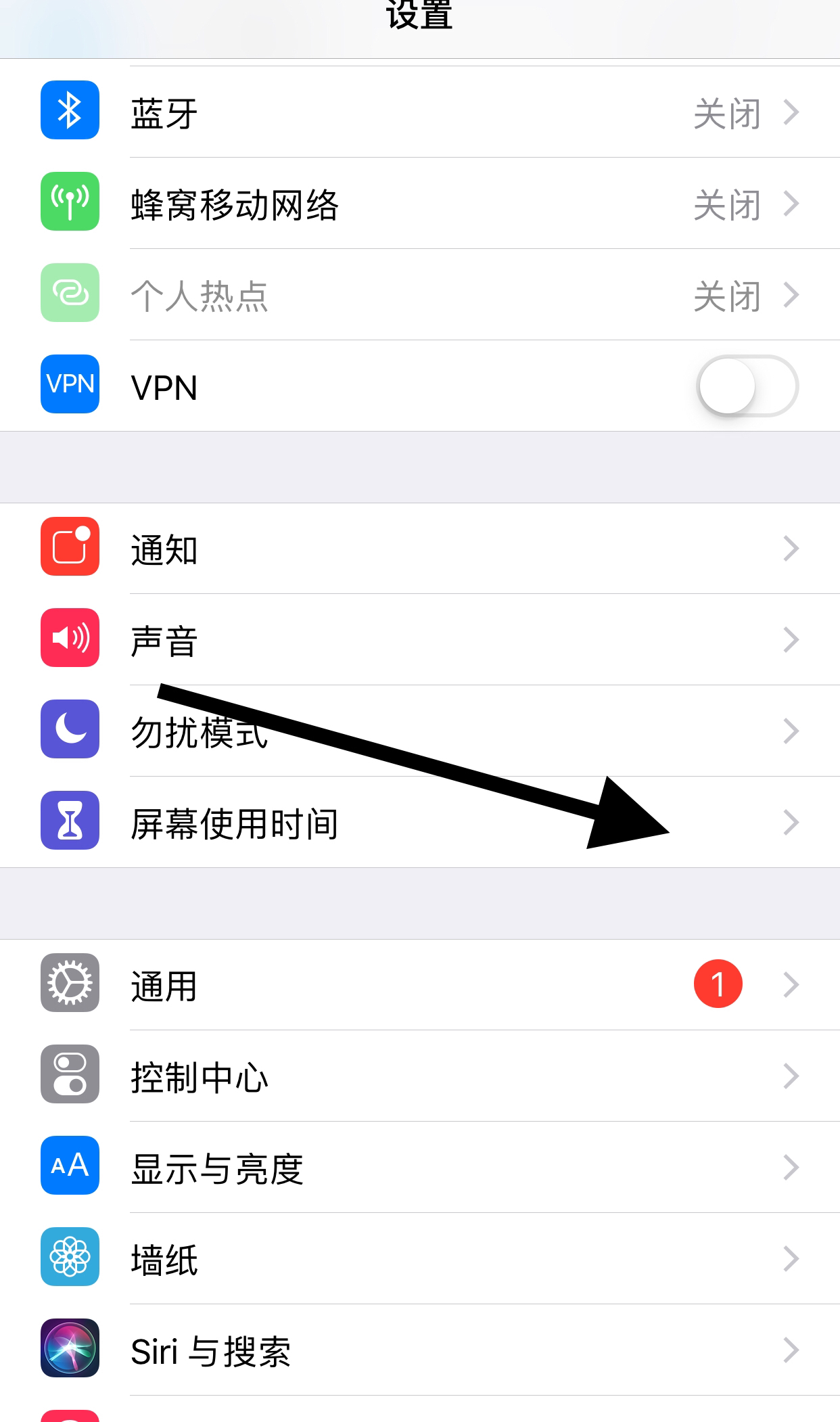 1.打开设置图标,进去设置页面后,找到屏幕使用时间选项,打开