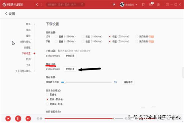 4.然后,我们打开网易云音乐的缓存目录cache,我是自己设置过的,一般在“设置”里都能看到
