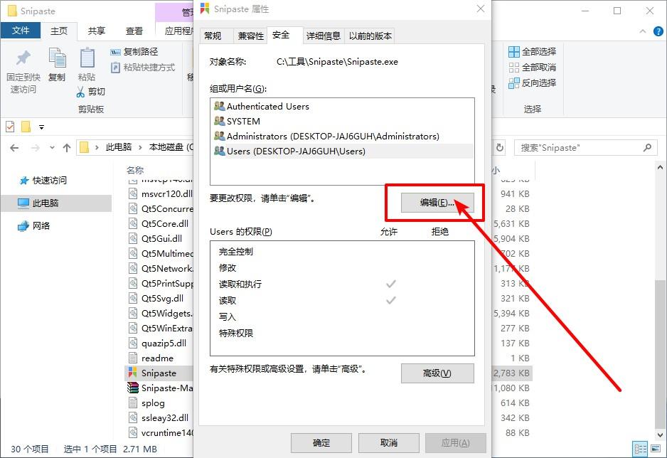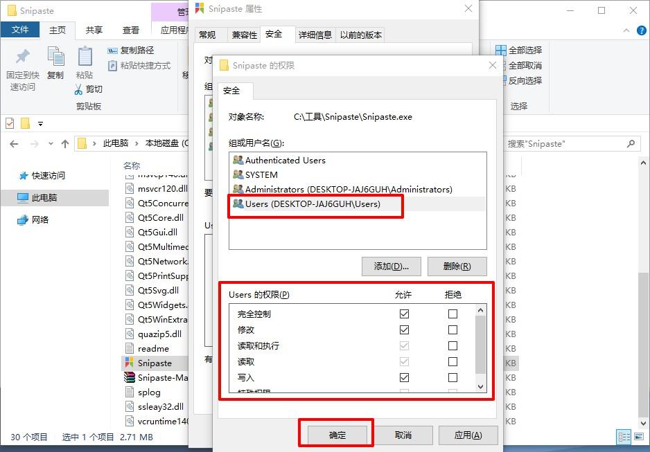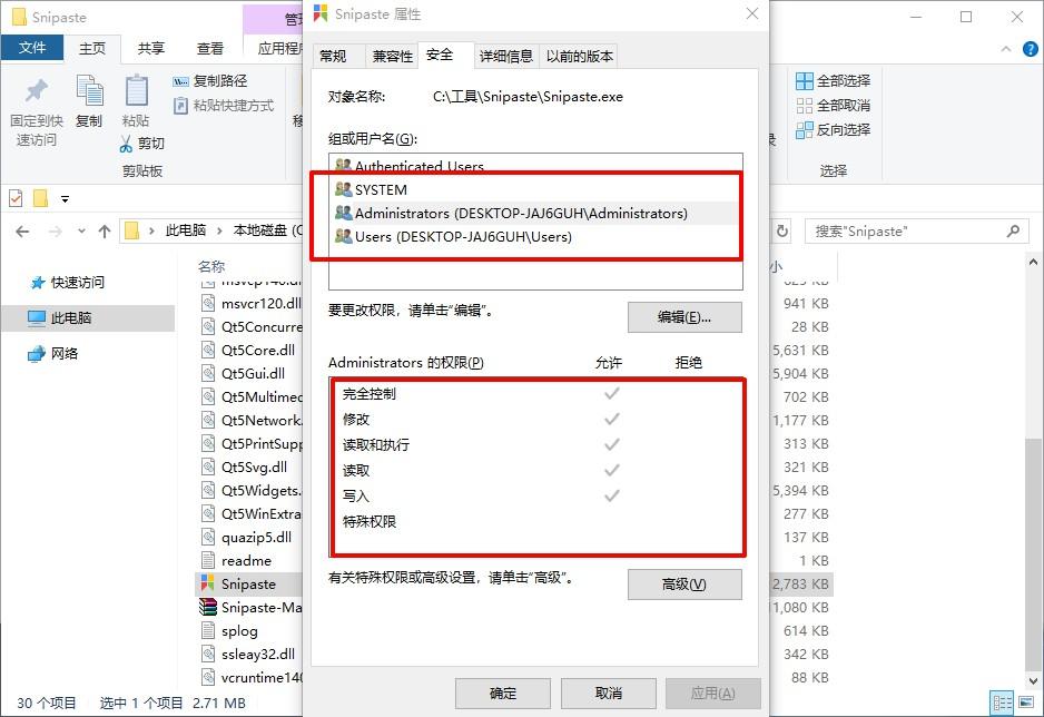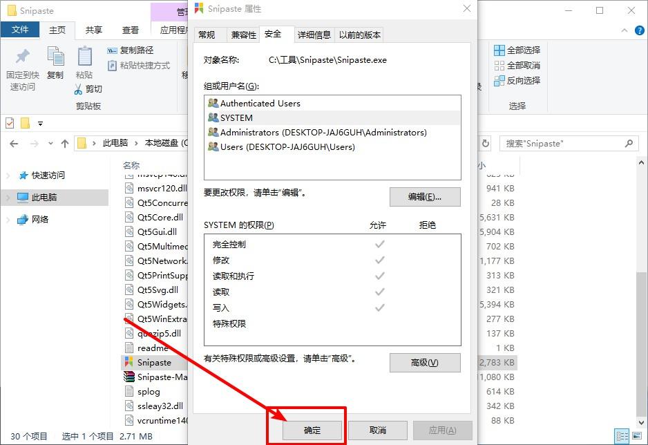 2、 点击切换至“安全”选项卡,将Administrators, Users和System三项的权限设置为完全控制