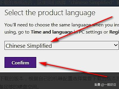 7、选择需要下载的系统语言,这里我们选择“chinese Simplified”简体中文版。点击“Confirm”即可。