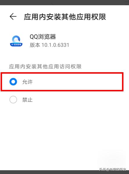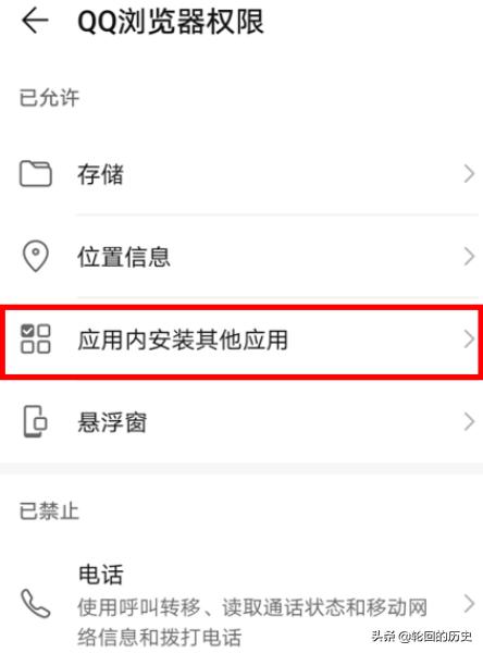 5、打开QQ浏览器权限管理后,选择应用内安装其他选项打开。