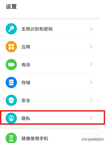 2、然后,选择里面的隐私选项打开。