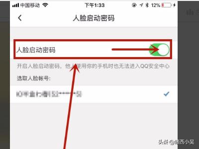 5、最后开启人脸启动密码开关就可以了。这样操作完成除非你本人,别人知道你的密码也是无法登录你的QQ的。如下图所示。