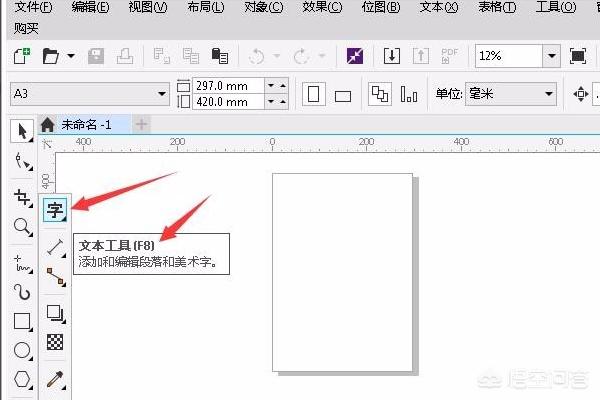 2、在左侧工具栏中点击文本工具,快捷命令为F8。