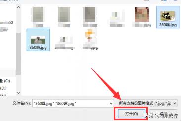 3.弹出窗口,选择自己需要凭借的图片,按住ctrl键点击鼠标可以同时选择多张图片,选择完毕后点击“打开”。