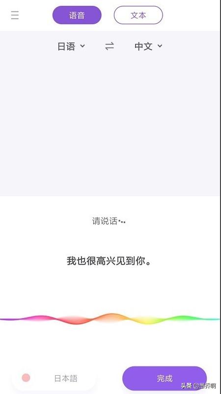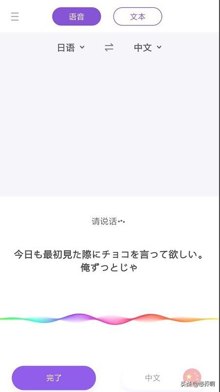 4、中文翻译日语页面,点击右下角的中文标志按钮,开始说话,说话完成后点击完成按钮,开始进入中文翻译日语页面。