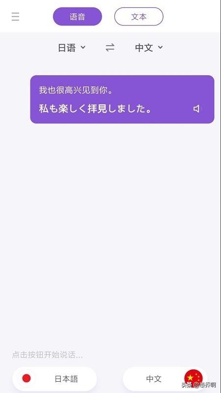 5、中文翻译日语的翻译结果会以中日语文字出现,同时还会播放日语语音,点击文本框中的喇叭按钮,可以进行日语语音重复播放。