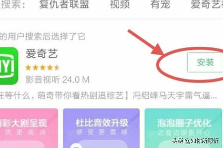 2.打开了应用软件后,找到搜索这一栏,然后点击进去就可以输入你想要下载的软件名称,如“爱奇艺”,输入完毕就点击旁边的“搜索”。