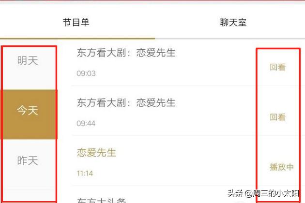 4另外我们还可以点击“节目单”,这样的话可以找到这个频道之前播放的内容的回放,也可以预约之后没放的内容,功能非常强大哦,就连隔天的也可以找到呢。