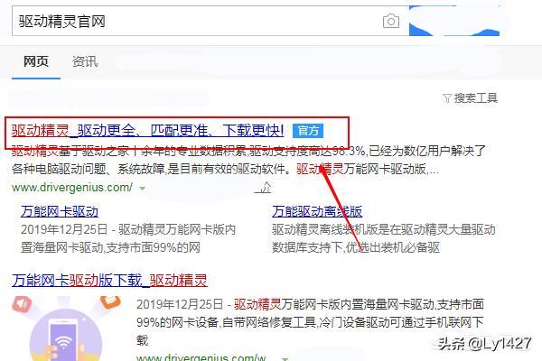1、点击搜索结果词条,进入驱动精灵官网。