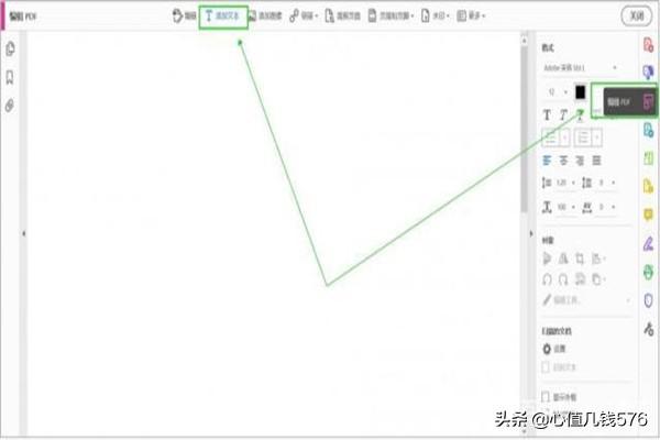 2、接着在新建的空白PDF文件界面上,我们点击右边工具栏中的“编辑PDF”。随后在“编辑PDF”界面中,点击上方的“添加文本”。