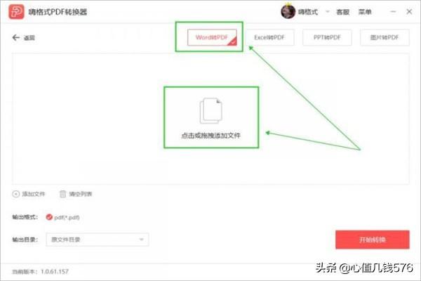 2、然后我们选择“文件转PDF”中的“Word转文件”。选择后将自己的Word上传到文件列表区域。上传Word文档有两种方式一种是直接点击中间空白区域,在出现的“打开文件”对话框中选择文件进行添加。还有一种是将准备好的Word文档拖拽到中间区域自动添加。
