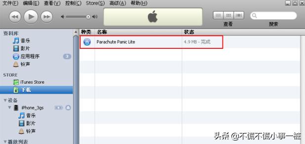 购买了这款游戏后,iTunes将自动把游戏下载到你的电脑上,在左边会出现下载栏目,我们点选后会在右边内容窗口看见下载进度。