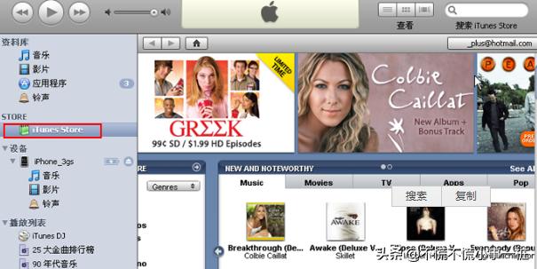 如果想在iPhone上玩游戏,首先你需要注册一个iTunes帐号,然后就可以登陆iTunes来购买游戏了,打开iTunes,在左边菜单栏选择iTunes Store