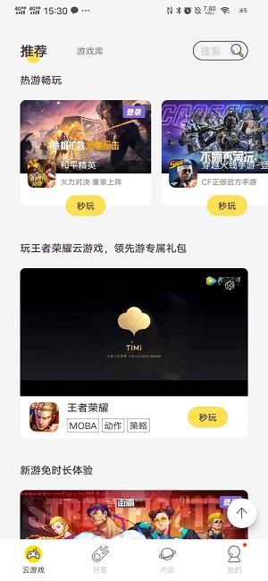 2.在界面左下方的位置可以看到有一个【云游戏】的选项,在该栏里面的游戏都是支持秒玩游戏的,随便点击一个游戏进入界面;