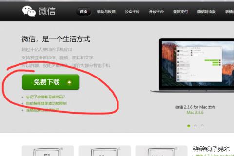 2、然后在微信官网主页点击“免费下载”【如下图所示】;