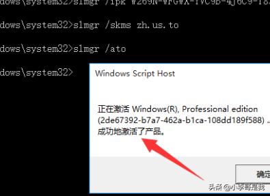 7、接下来输入以下命令:slmgr /ato此时将弹出窗口提示:“成功地激活了产品”。