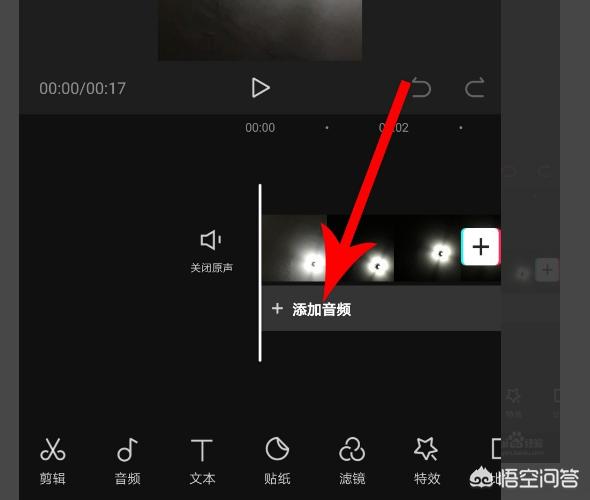 6、点击之后,音乐就会再次添加到视频剪辑界面,起始位置是时间线所在位置。这样就为视频添加了两次音乐,音乐播放次数从1次变成了2次,音乐播放时长为原来的2倍。