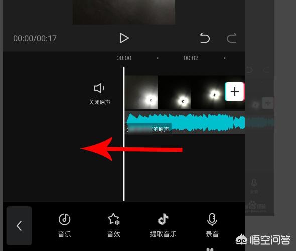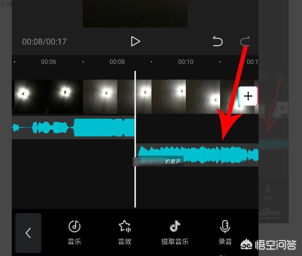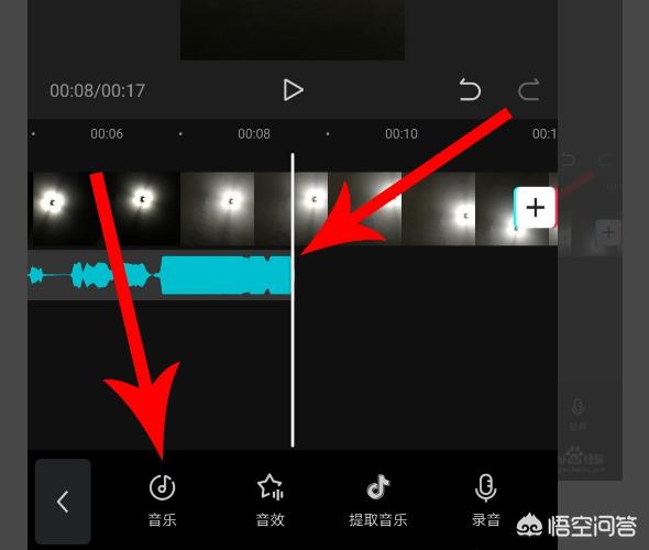 4、当时间线与音乐结尾位置重合后停止拖动,然后点击“音乐”。