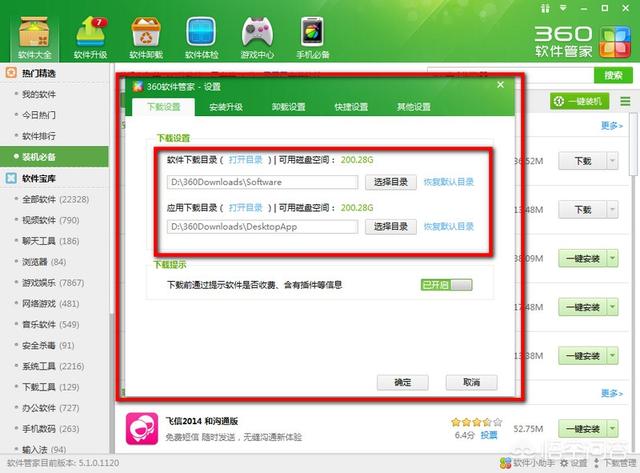 第二步:我们打开软件,然后在这里你就可以看到你下载的这个软件将会保存到默认的位置里,这也就是我们在找的360软件管家下载的文件在哪?