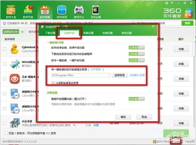 在上图我们看到的默认的文件保存位置,和上图一样,我们先在软件中找到设置,然后在设置界面,找到“安装升级”