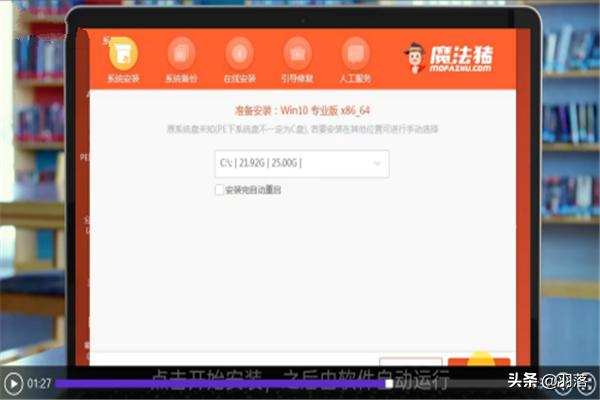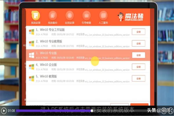 7.选择要安装的系统,点击安装。准备安装界面中无需更改,点击开始安装,选择继续。等待安装。