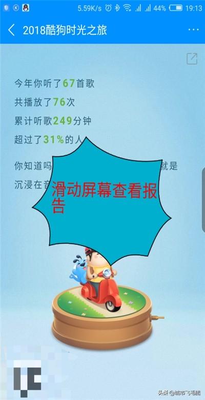 4、打开查看报告后,就能看到听歌报告了,第一次用酷狗是什么时候,都能看到。上下滑动屏幕,翻页报告界面。如图所示
