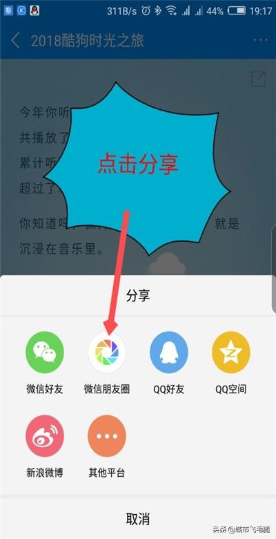 6、点击后,底部弹出一个分享界面,选择分享方式,点击微信朋友圈,就可以分享朋友圈了。如图所示