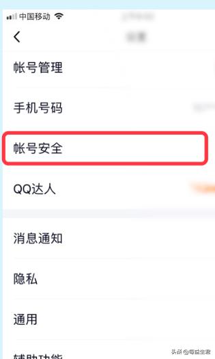 3、在【设置】界面,选择并点击【账号安全】选项。