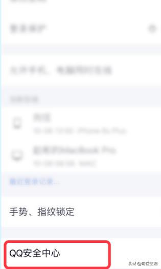4、在【账号安全】界面,选择并点击【QQ安全中心】选项。