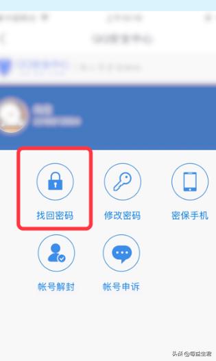 5、在【QQ安全中心】界面,选择并点击【找回密码】选项。
