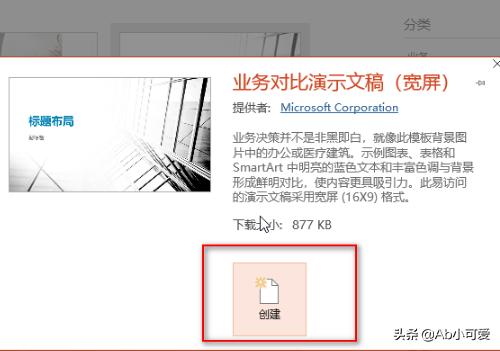 4、点击模板后,可以看到关于这个模板的简单介绍,觉得不合适就关闭它重新选择,觉得合适就点击“创建”。