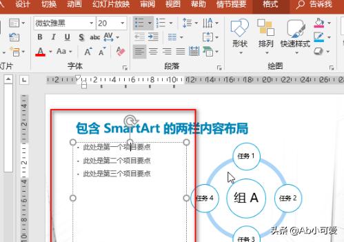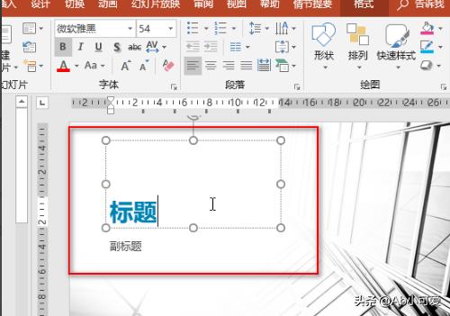 6、现在要做的就是替换模板中的内容。例如点击标题框就可以将标题修改成自己想要的。