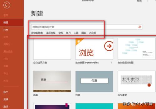2、在“新建”下可以看到很多的模板,以及各种分类。如果没有看到“新建”按钮,可以点击“文件”——“新建”。