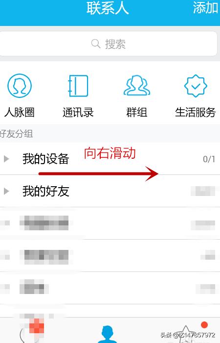 1、首先打开手机QQ,向右滑动。如下图
