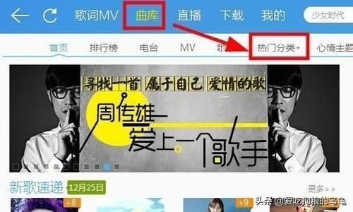 2、打开软件我们会看到很亮丽、简洁的页面。直接点击曲库——热门分类。
