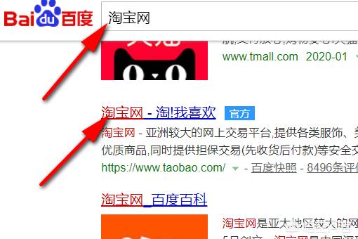 1、打开浏览器,搜索淘宝网,找到带有官方标识的淘宝网。